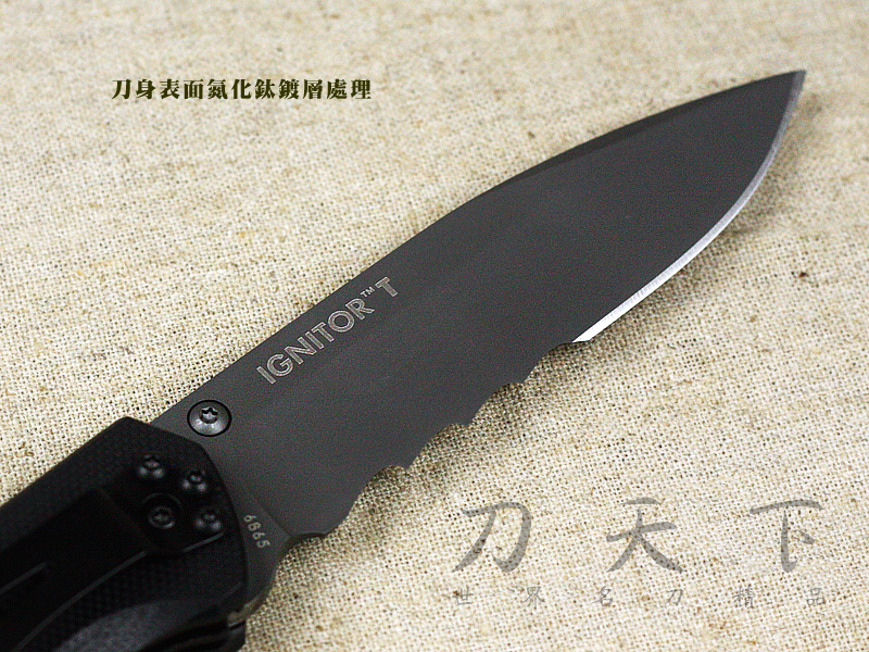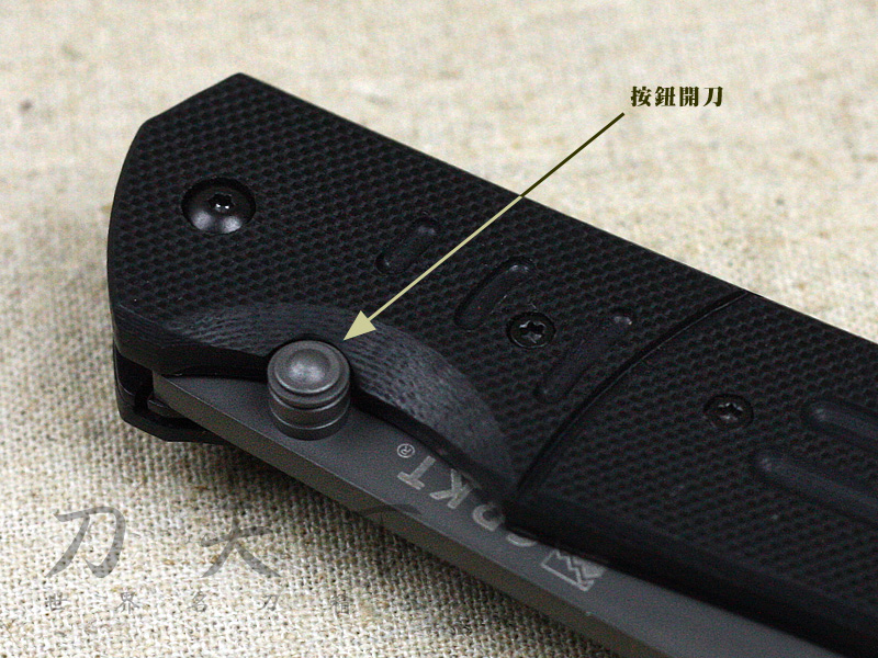 不得不說,這款"Ignitor T"在設計上的確是把非常獨特、也很有趣的折刀,會這麼說的理由,就在於它具備「拇指柱觸發開刀系統」,也就是CRKT的獨家專利"Fire Safe",這在CRKT的所有折刀款式當中可說相當稀有,只有Ignitor系列及其他一、兩個款式具備這樣的設計。