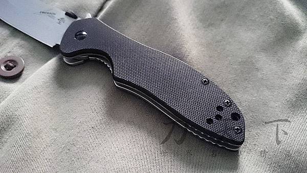 前握把為G10材質,已預留三個背夾螺絲孔讓使用者依需求更換方向。