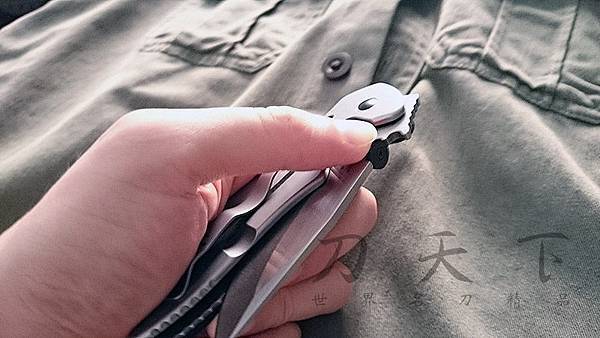 ●其他特點 - 拇指盤、WAVE刀身拉鉤、可移置式背夾(左右共2處)、穿繩孔