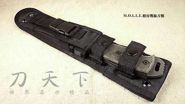 刀鞘也是標準戰術風格,相容於M.O.L.L.E.,配掛方式的靈活多元(掛腰帶很平常,貼附似掛在戰術背包上才叫酷,它可以!),刀鞘附有Kydex內襯,不必擔心被劃破,上層附一個儲物小袋
