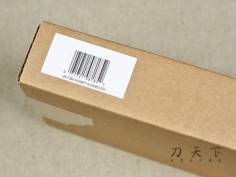 盒上標籤"M-7 BAYONET W/SHEATH"(M-7刺刀附刀鞘)。